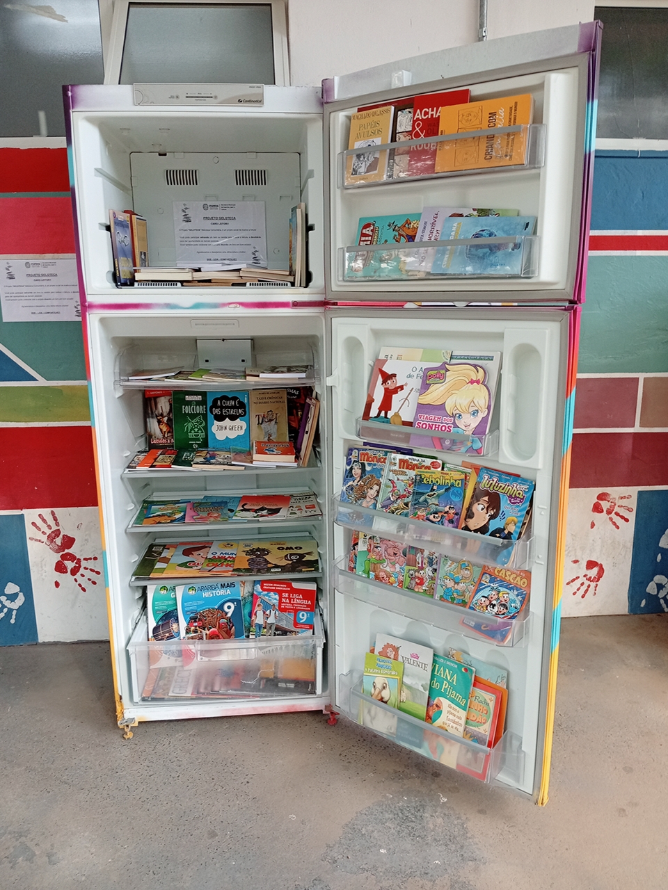 Inspirado em outras regiões do Brasil, o projeto transforma antigas geladeiras usadas em bibliotecas comunitárias.