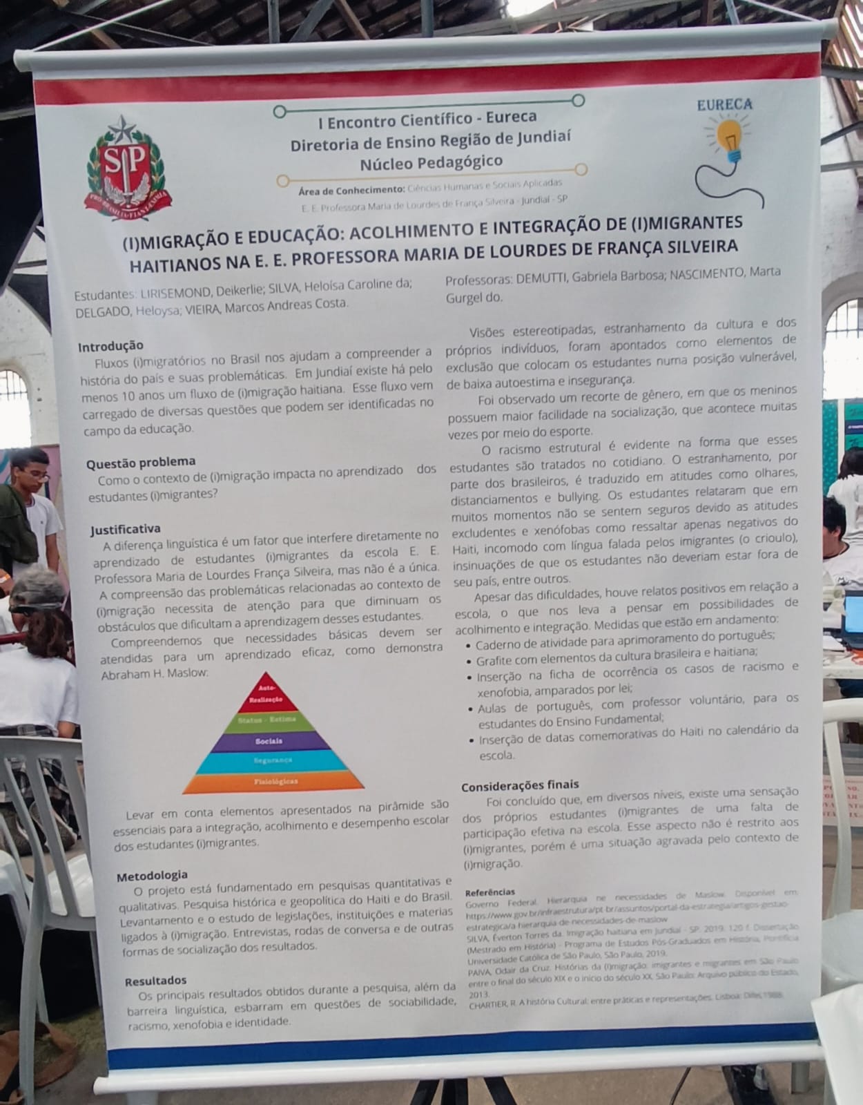 1° lugar Pré-Iniciação Científica – Escola Maria de Lourdes de França Silveira – Imigração e Educação: acolhimento e integração de (i) migrantes haitianos na EE Maria de Lourdes de França Silveira