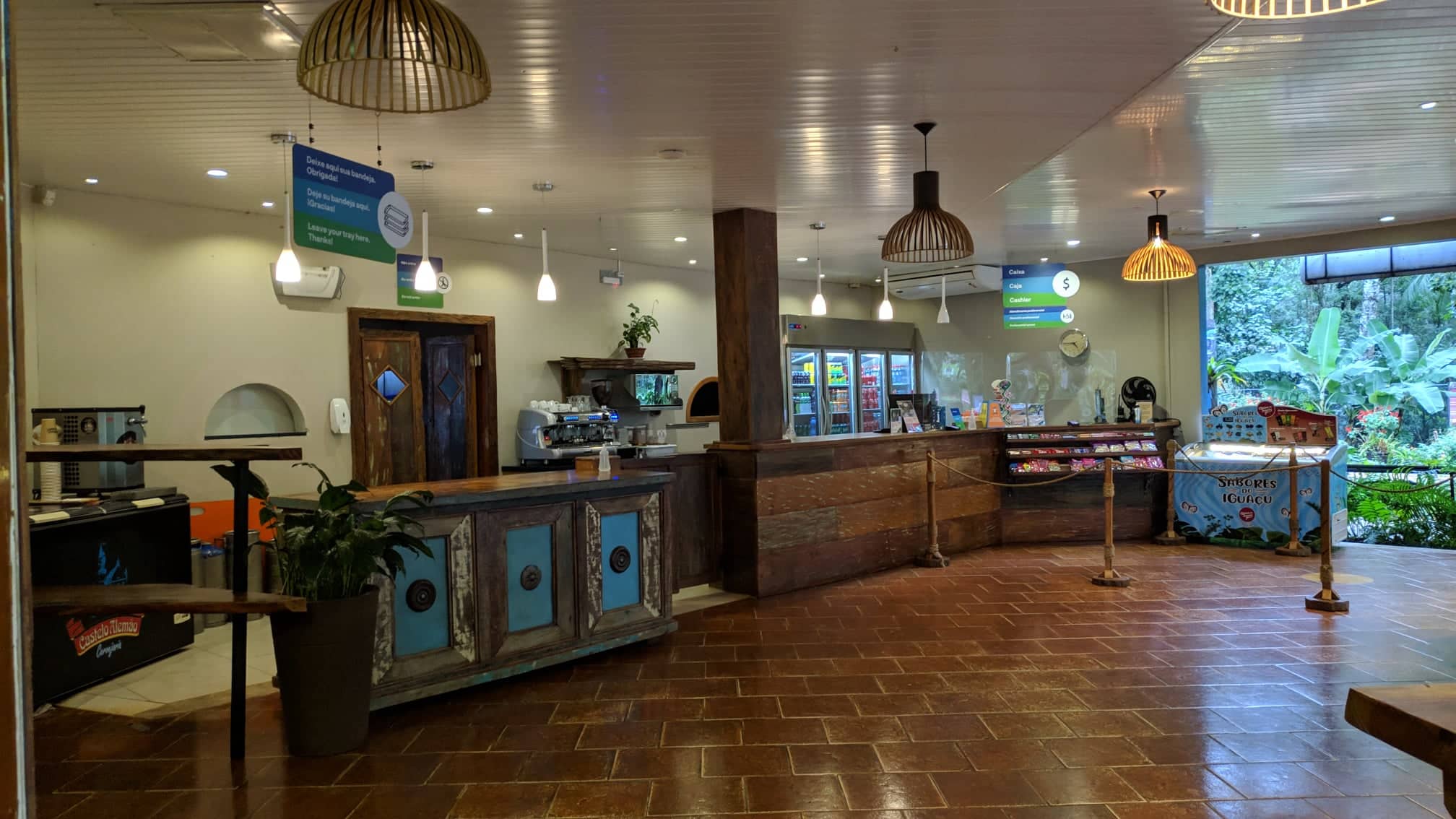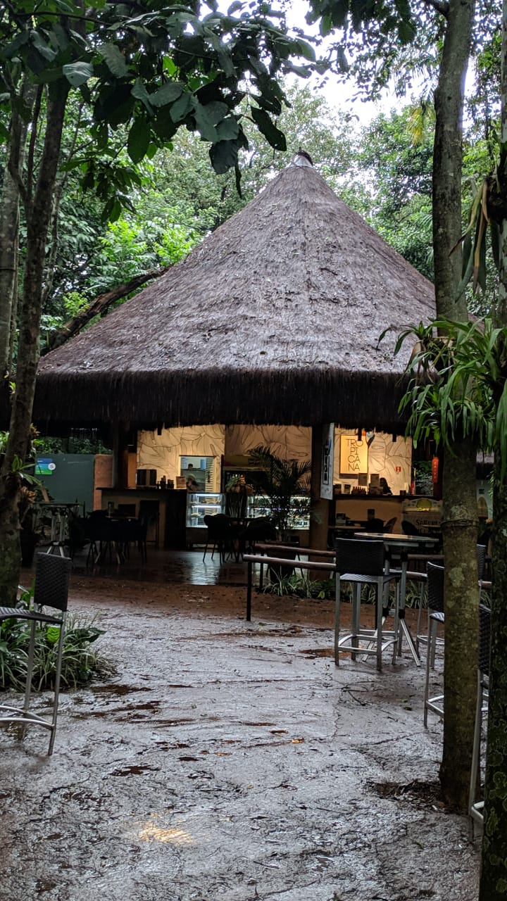 Para quem quiser fazer uma parada durante a trilha para descansar e fazer um lanche rápido, o quiosque Tropicana é uma ótima opção. Ali encontramos o combo de chocolate quente com coxinha. Nós optamos, e aprovamos, o café com pão de queijo.