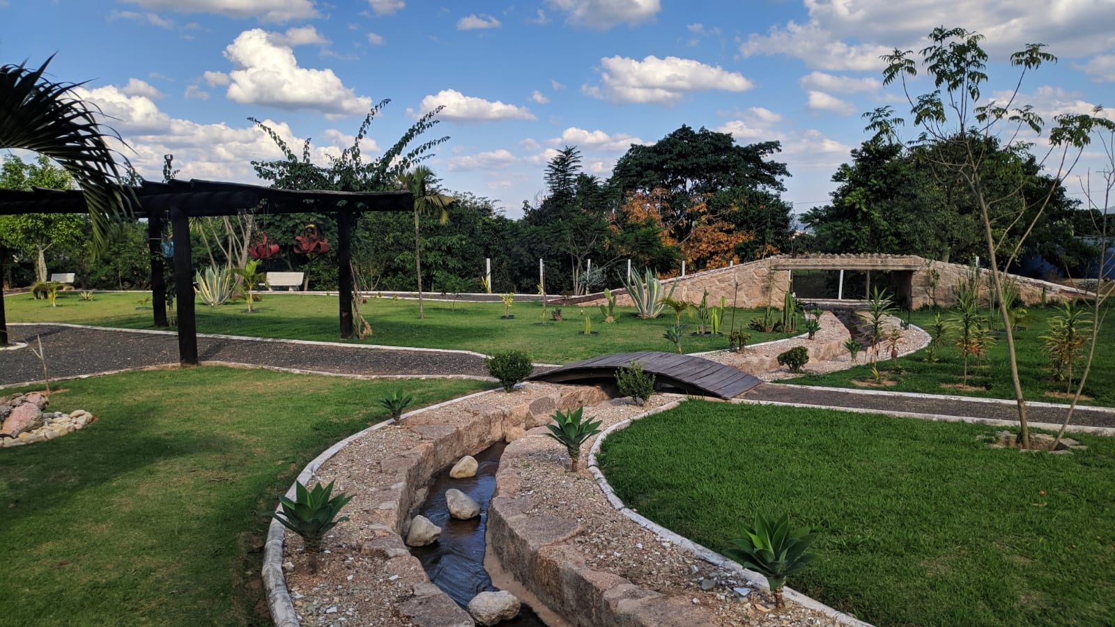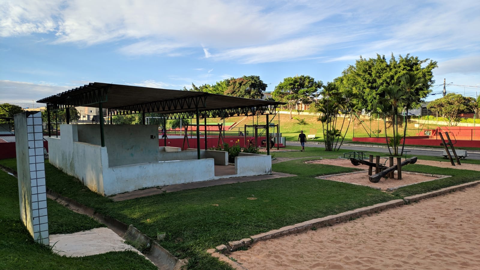 Há, ainda, duas churrasqueiras, bancos e infraestrutura, como banheiros e bebedouros.