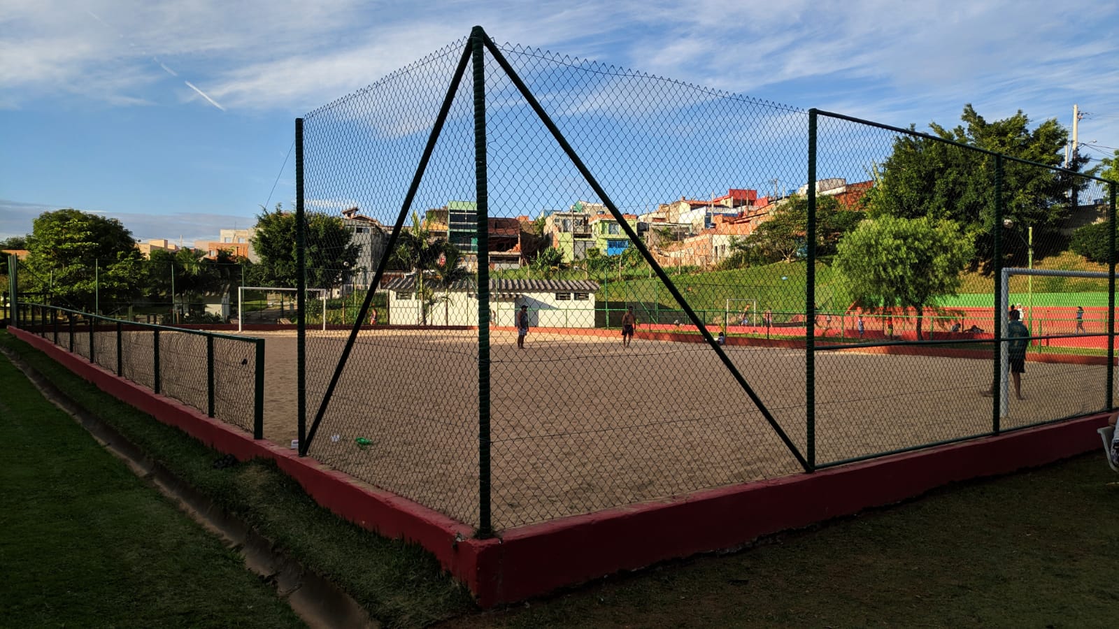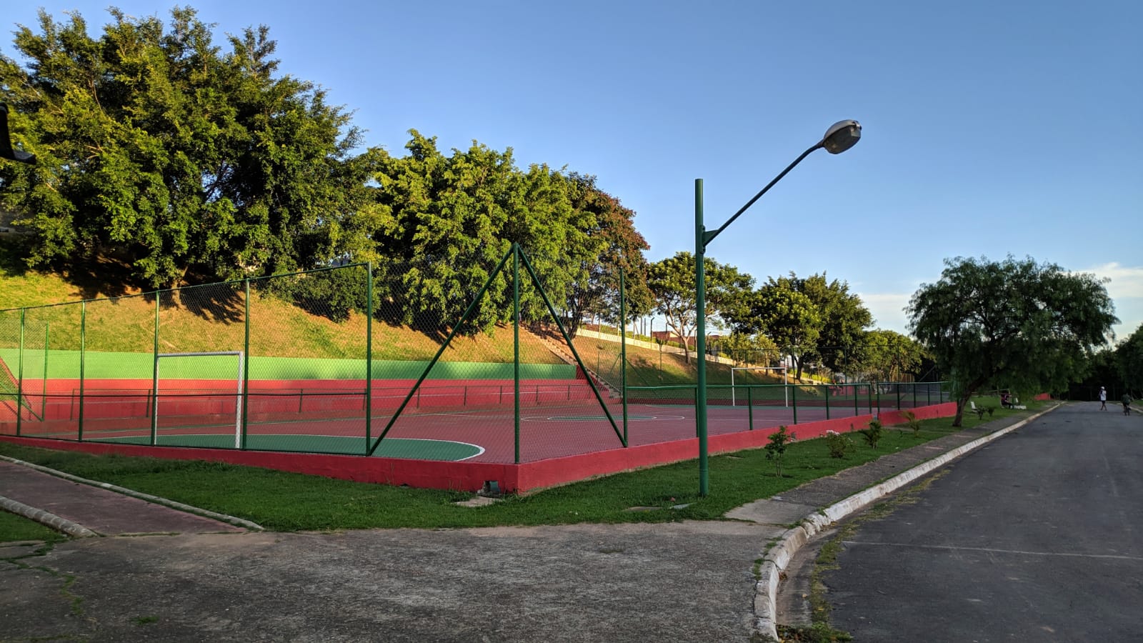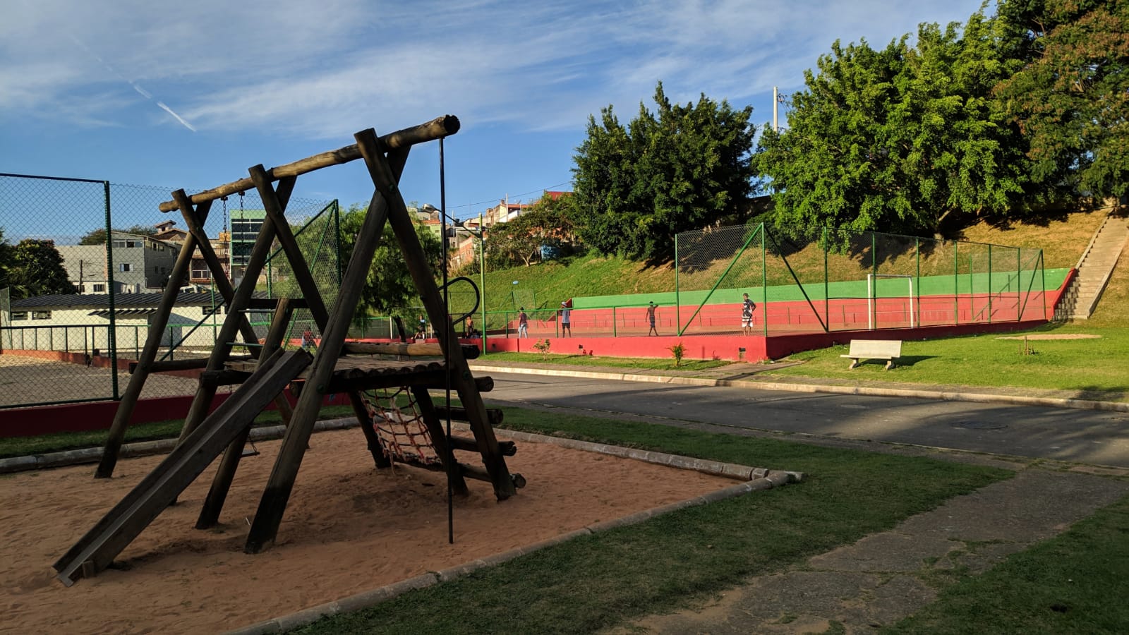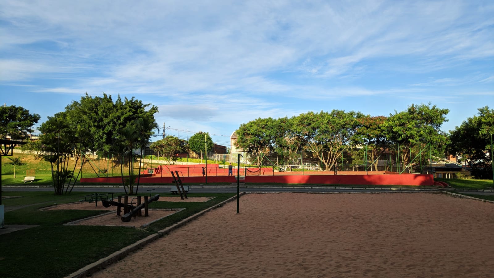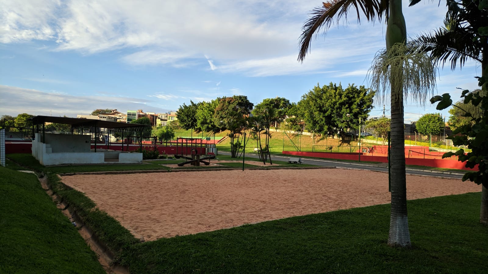 O espaço conta com pista para caminhada, parque infantil, duas quadras de futebol de areia, duas de futsal, uma de vôlei de areia e tênis.