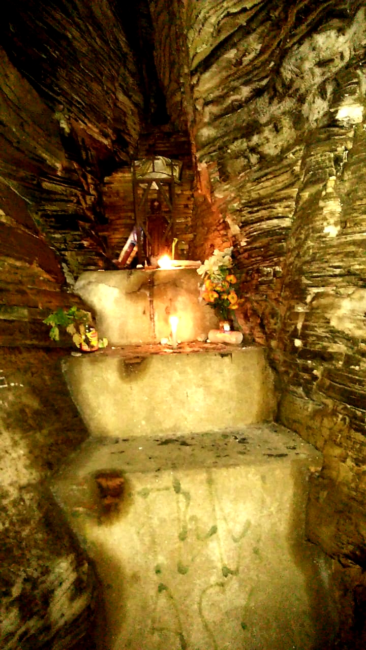 A gruta tem um extenso e estreito corredor revestido por parede de argila. Em alguns trechos, esse corredor torna-se tão estreito que quem passa acaba ficando “carimbado”.