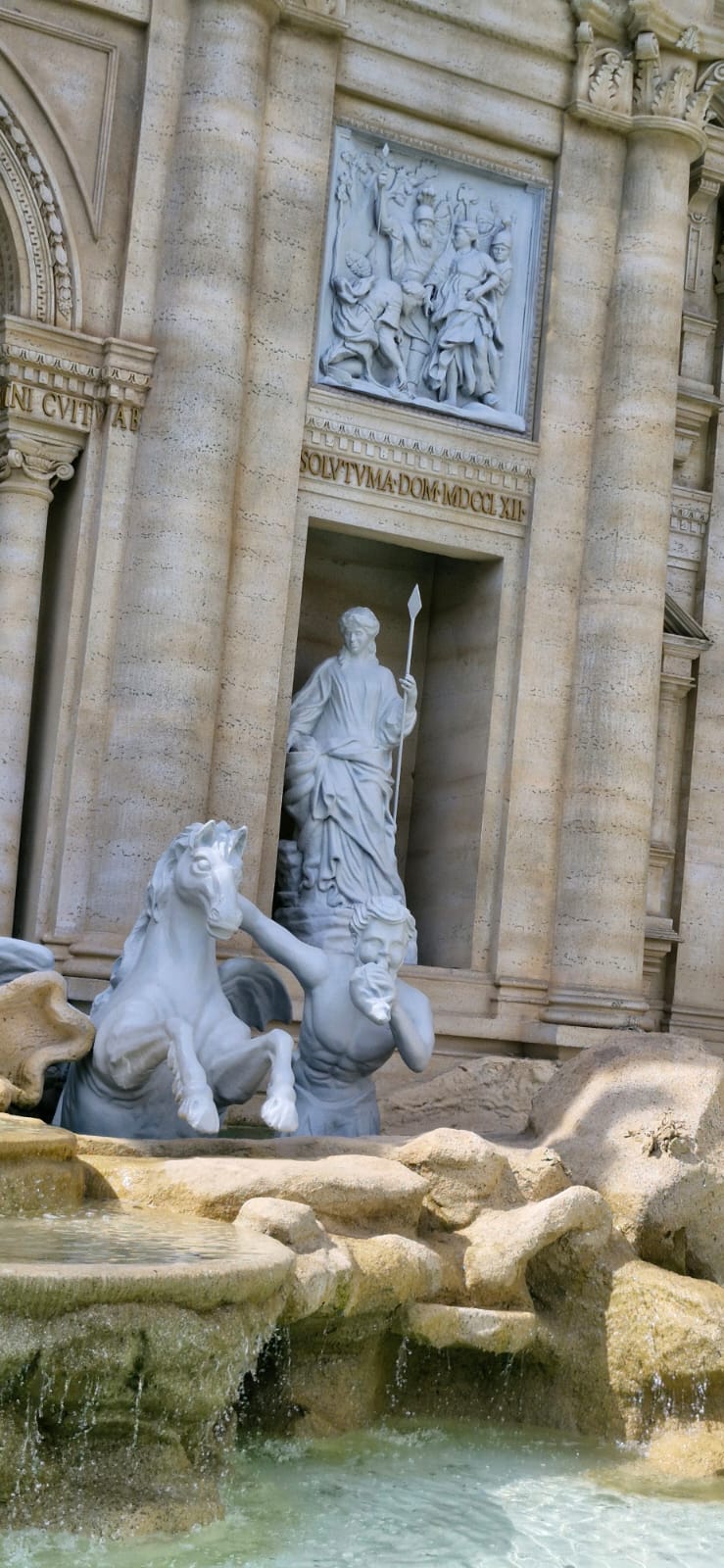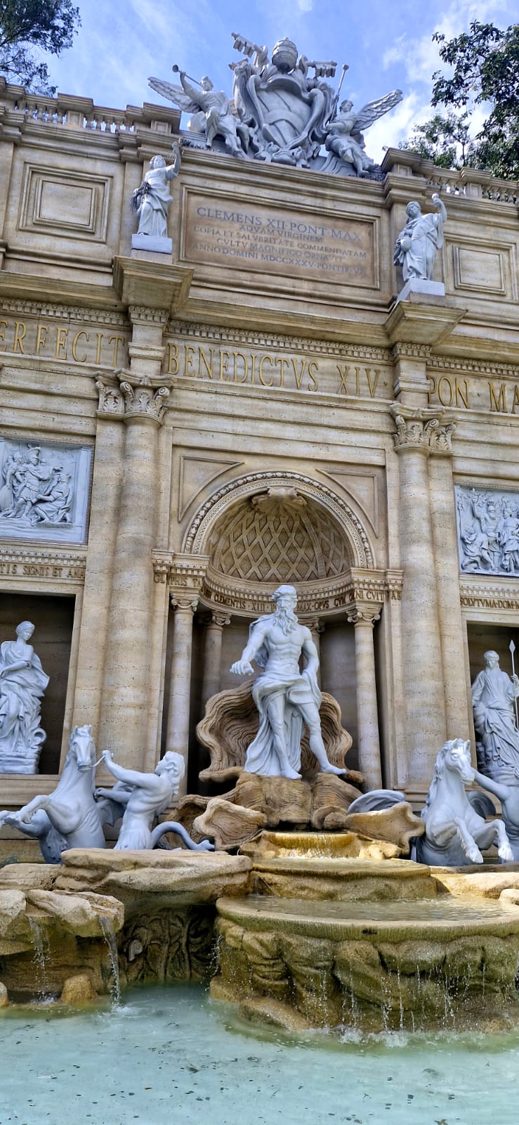 A área é de 370 m2 e possui 11,4 metros de altura, a partir do espelho d’água e 20,4 metros de largura, o que corresponde a 40% do monumento original. Os visitantes também adotaram a tradição de jogar moedas na Fonte, assim como na Itália.