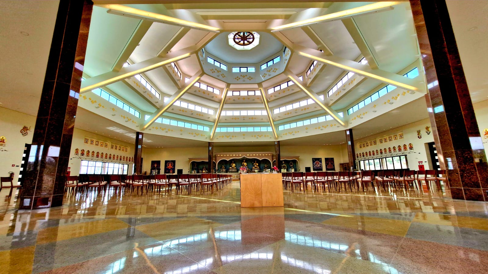 O Templo pela Paz Mundial destaca-se na paisagem pela sua grandiosidade e beleza.