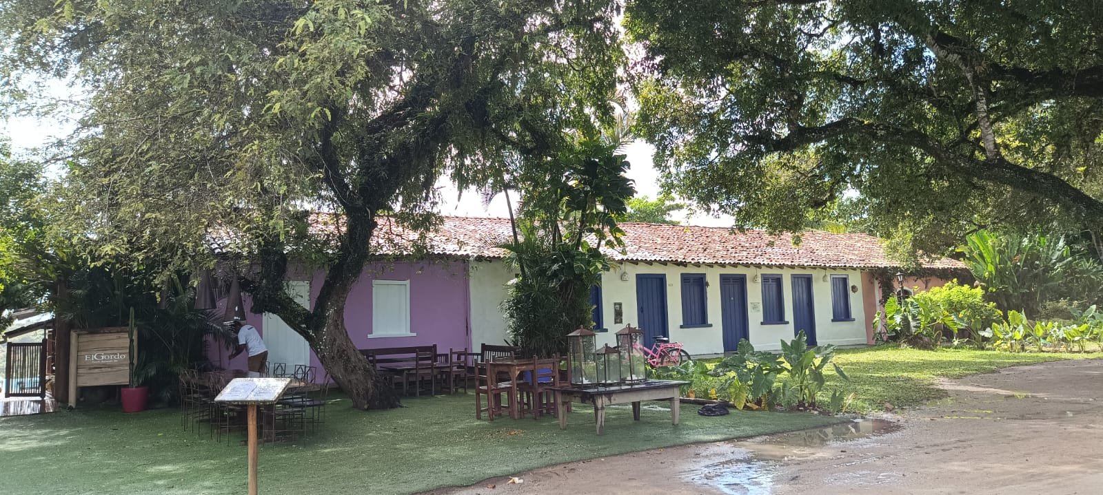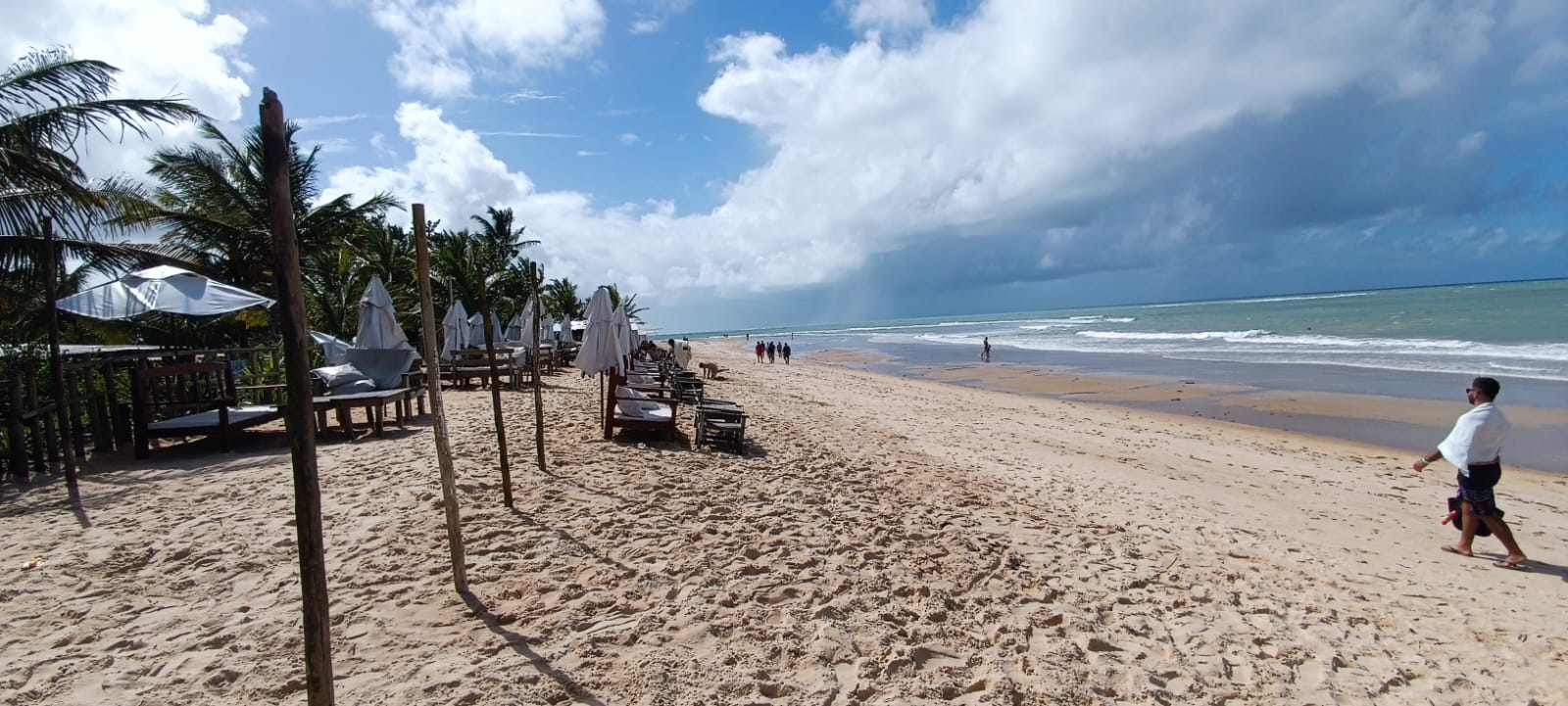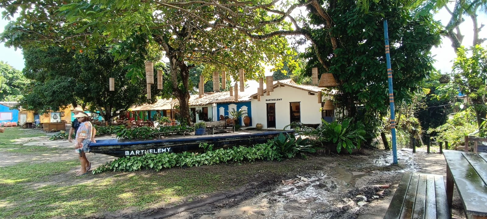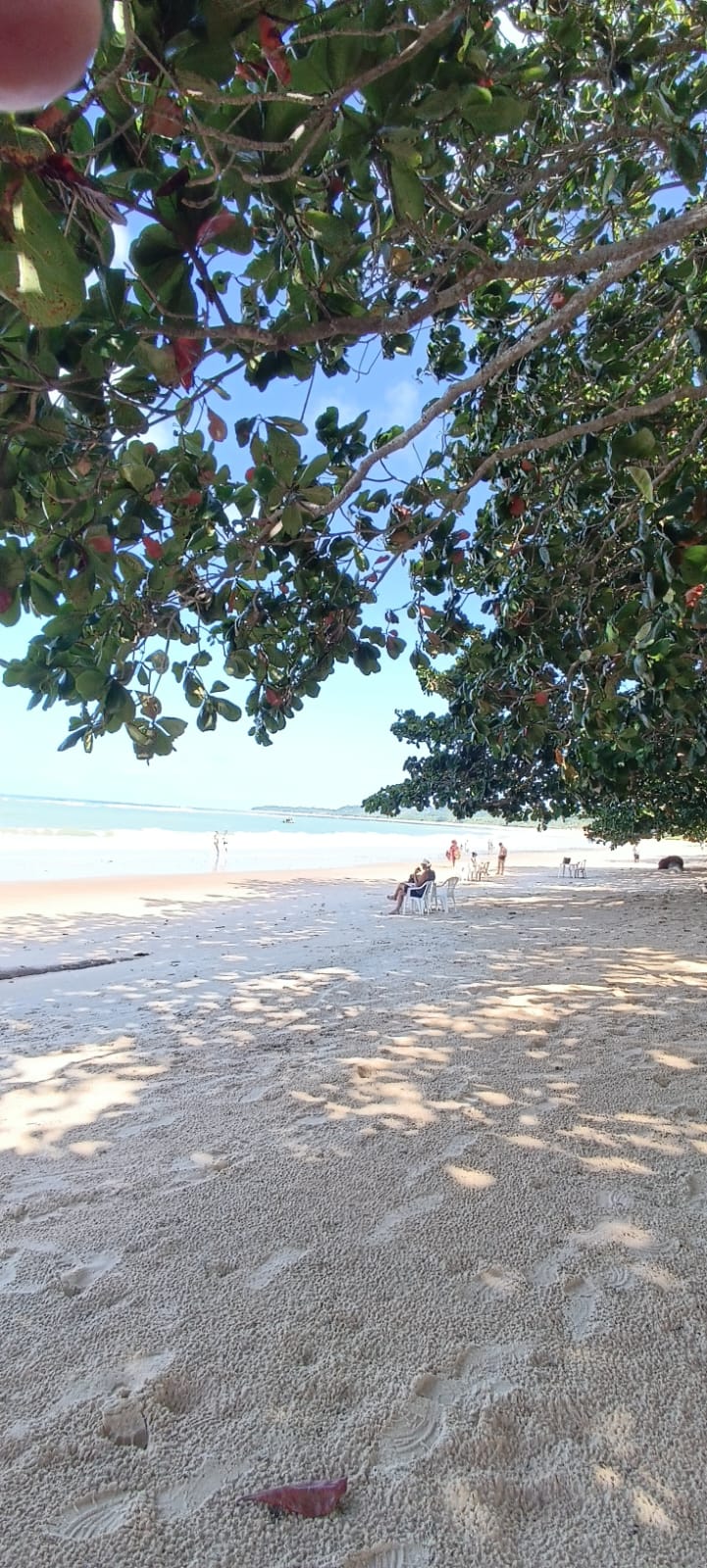 A guia também tentou nos induzir a ficar em um quiosque, que vinculava o uso de sua infraestrutura à reserva antecipada do almoço, ou ao pagamento de valores um tanto abusivos para uso apenas do espaço. Preferimos andar pelas praias e encontramos várias outras opções de quiosques, além de outros locais sob a sombra de árvores, onde é possível relaxar e curtir a paisagem.